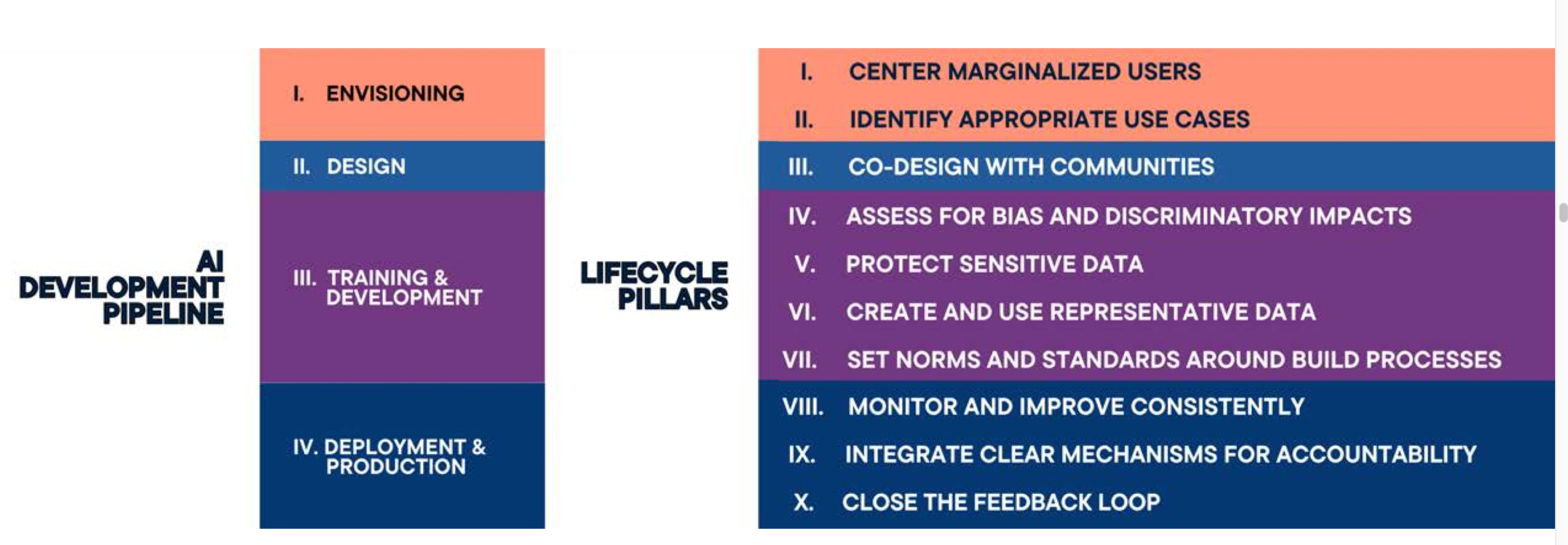 In fairness, some argue that a civil rights framework, could operate proactively in the entire AI life cycle. This framework, from The Center for Civil Rights and Technology (a joint project of The Leadership Conference on Civil and Human Rights and The Leadership Conference Education Fund), in their report, The Innovation Framework: A Civil Rights Approach to AI, envisions such a centering.