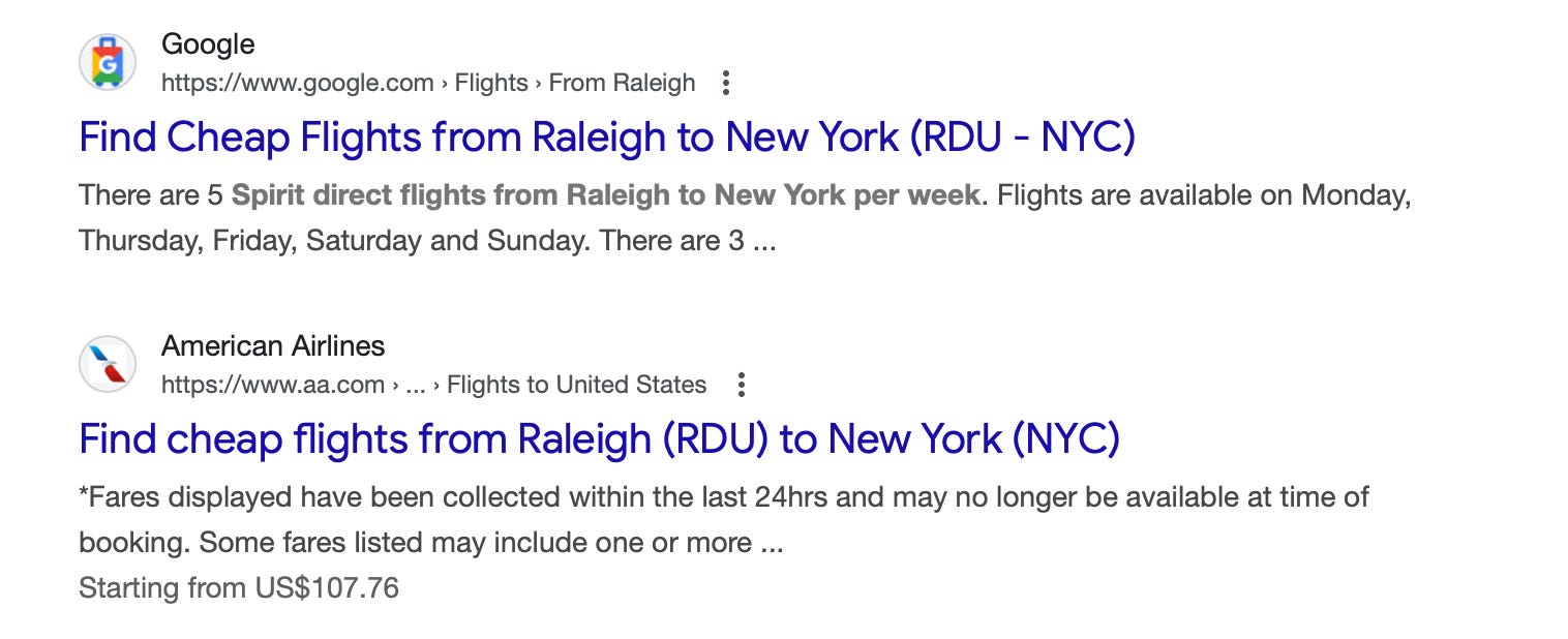 In my live class with your Duke Law counterparts, all the students searched at the same time for flights from RDU to NYC next Friday to Sunday. The result? We ended up with a wide range of prices ranging from $27 to $326.